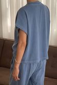 Jeanne Tee is our perfect muscle tee. She features a shorter length to pair perfectly with high waisted bottoms but still give enough coverage for mid-rise bottoms and just the right amount of off shoulder dolman sleeve. She has a high crew neck with an extra wide neckband that adds to her signature charm.